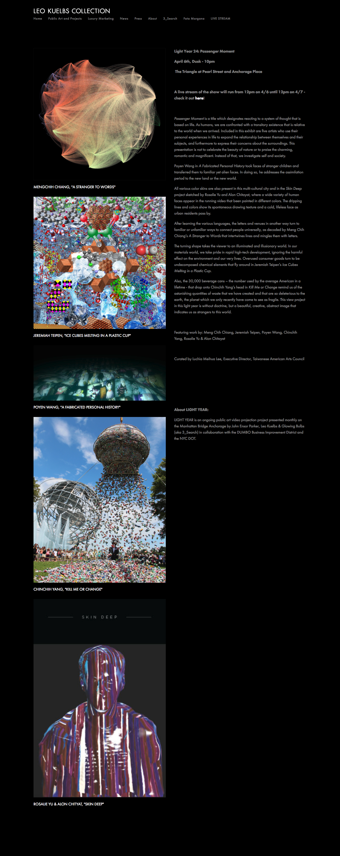 Got this info straight from Luchia.Passenger Moment is a title which designates reacting to a system of thought that is based on life. As humans, we are confronted with a transitory existence that is relative to the world when we arrived. Included in this exhibit are five artists who use their personal experiences in life to expand the relationship between themselves and their subjects, and furthermore to express their concerns about the surroundings. This presentation is not to celebrate the beauty of nature or to praise the charming, romantic and magnificent. Instead of that, we investigate self and society.